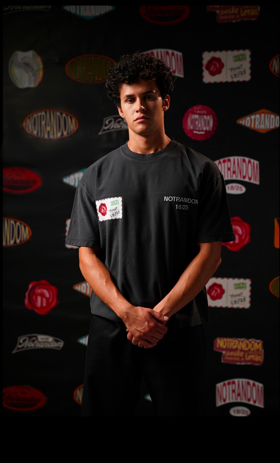 A unique piece from the NOTRANDOM limited collection. Classic black tee featuring an artistic “postage stamp” patch on the front and "NOTRANDOM" on the back – symbolizing identity and originality. Comfortable relaxed fit, crafted with high-quality cotton, perfect for everyday wear with bold attitude.